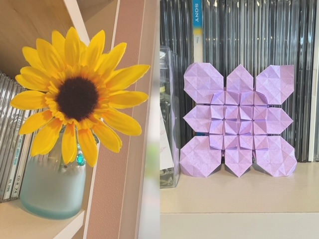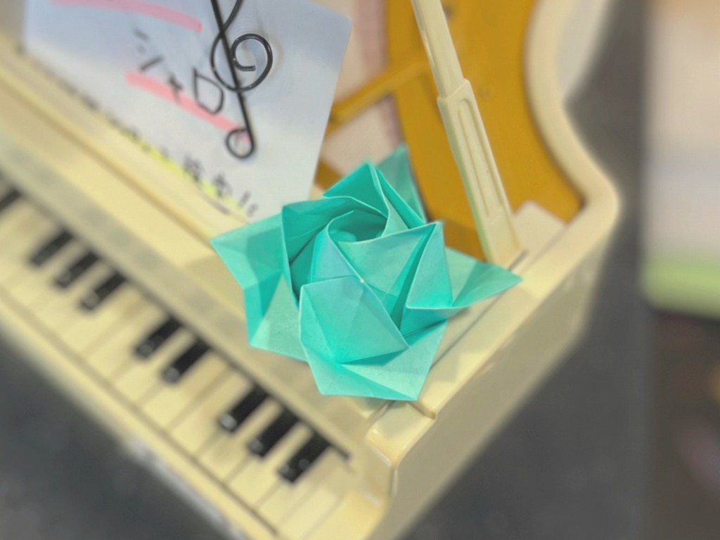 この折り紙も先ほどのキリンなどを作った生徒さんが「良ければ飾ってください」と持ってきてくださったものになります。