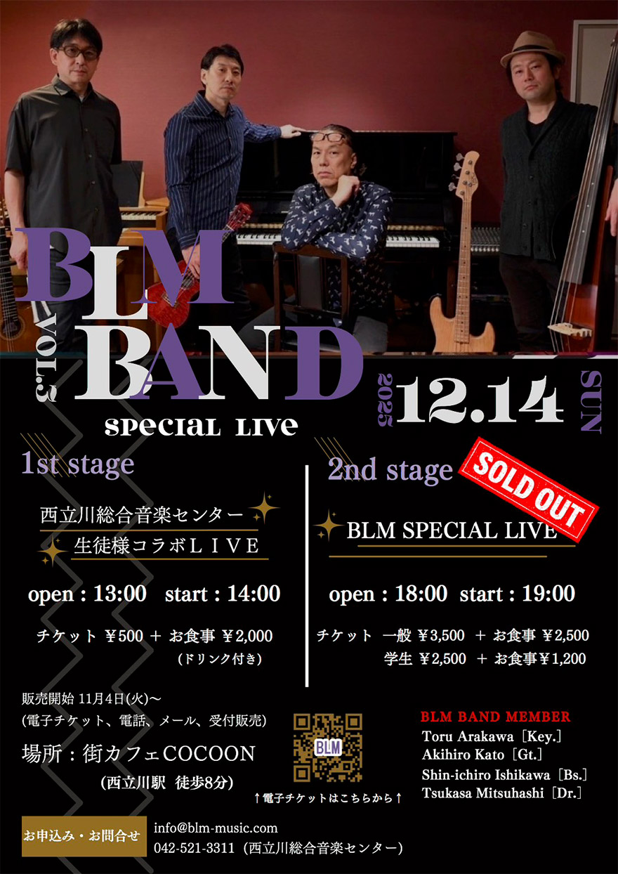 12月14日開催のBLM Special Live、たくさんのご予約をありがとうございます!